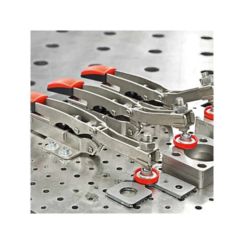 Sauterelle à serrage vertical avec bras ouvert et platine de fixation horizontale STC-HH 20 SB de Bessey. Puissance de serrage réglable jusqu’à 1100 N par action sur la vis de réglage de puissance se trouvant dans le corps de l’outil. Corps en tôle traitée haute résistance. Platine adaptée pour fixation en mm ou inch. Poignée bi-matière de haute qualité, résistante à l’huile.