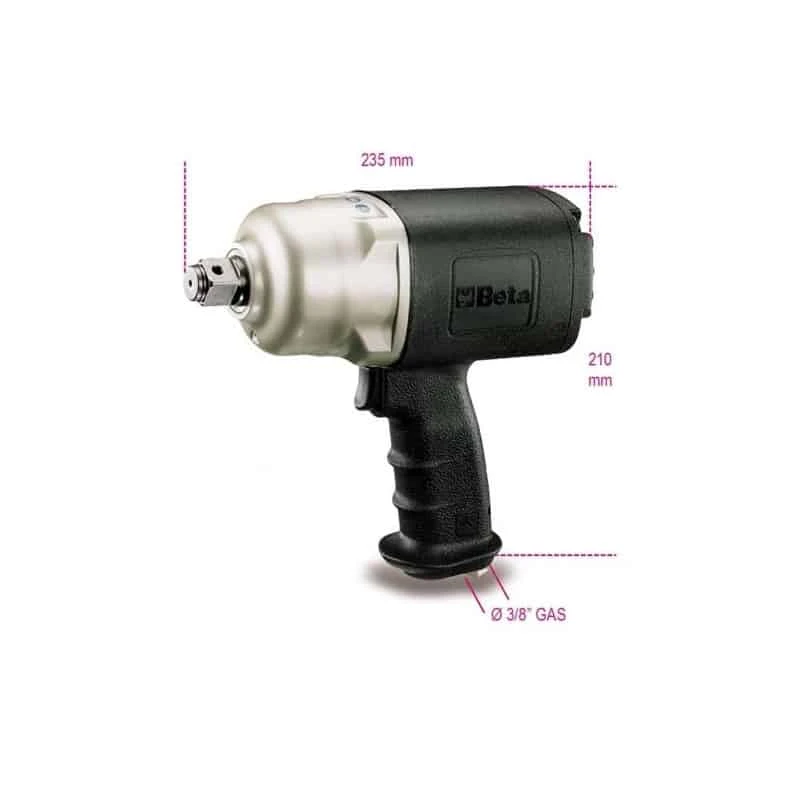 Clé à chocs réversible en matériau composite. Excellent rapport poids/puissance. Commande d’inversion à levier, trois niveaux de réglage de la puissance de vissage. Échappement de l’air par la poignée, et le plus, elle est silencieuse !