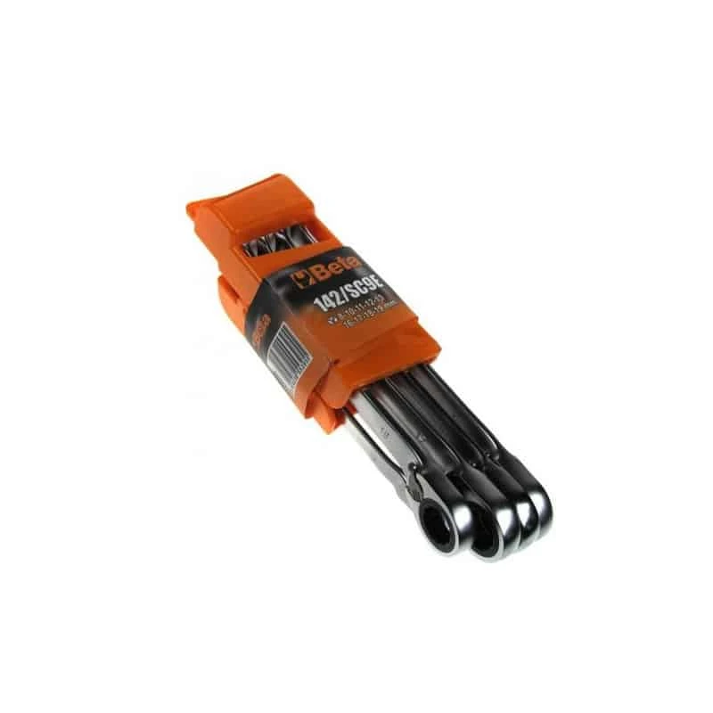 Assortiment de 9 clés mixtes à cliquet réversible avec support compact: 8 – 10 – 11- 12 – 13- 16 – 17 – 18 et 19 mm