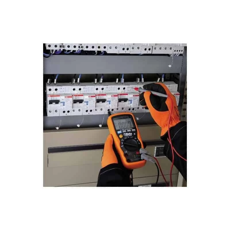 Multimètre digital industriel précis et solide, dans étui protecteur moulé de 6 mm, avec caoutchouc externe antiglisse et antichoc. Testé, il résiste à une chute de 2 m de haut. Imperméabilité à l’eau IP67. Entrées protégées, sélection automatique d’échelle, afficheur grandes dimensions avec rétroéclairage bleu. Base en caoutchouc porte-terminal pour un plus grand confort d’utilisation. – Entrées protégées – Sélection automatique d’échelle – Extinction automatique – Pointes à double isolation 1000V, longueur 1 m
