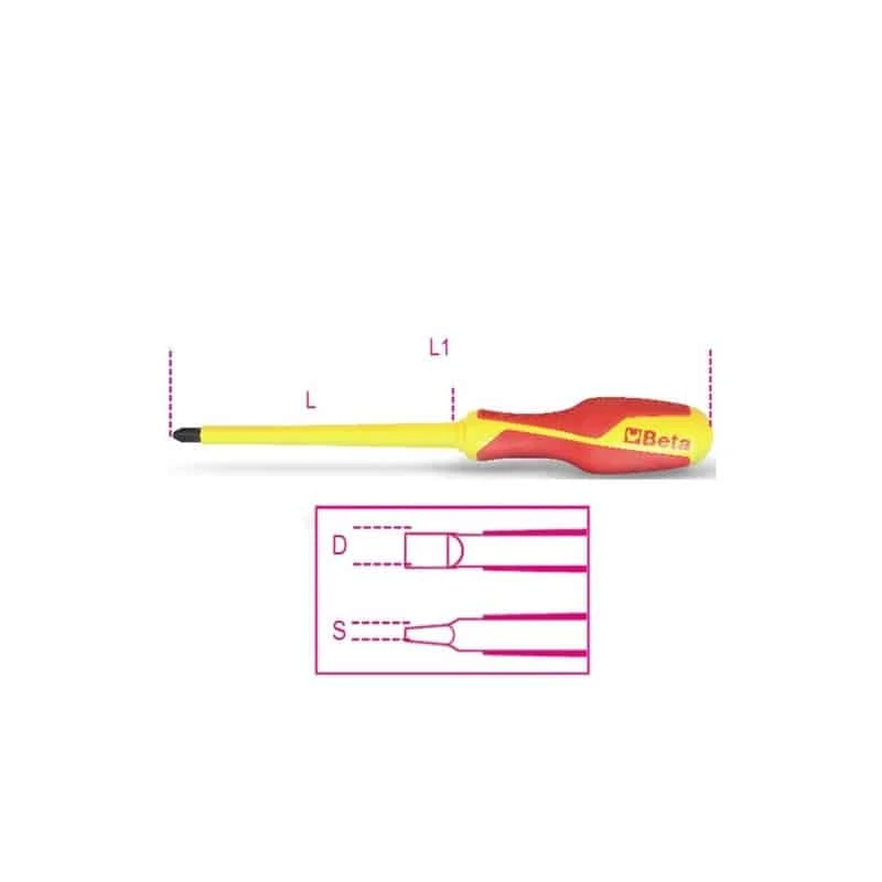 Tournevis à lame fraisée pour vis à fente, idéal pour le travail en électricité car isolé 1000V. 7 dimensions disponibles.