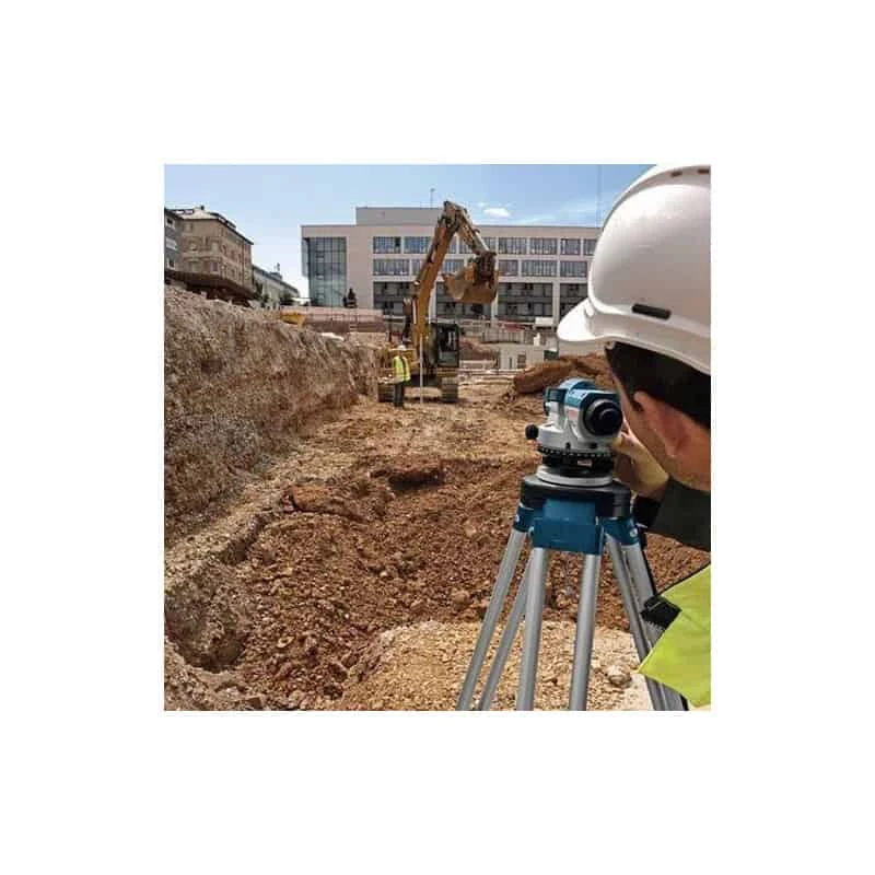 Robuste et fiable, il est idéal pour l’extérieur, grâce à leur carter robuste avec protection contre les poussières et projections d’eau IP 54. Il possède un objectif à grande ouverture ce qui permet d’obtenir une image nette de la cible. – Transport sûr grâce au dispositif de blocage du compensateur. – Collimateur pour orientation globale. – Pentaprisme pour une bonne lisibilité du niveau à bulle. – Photo verticale. Simplification de l’alignement, avec son grand bouton de réglage. Objectif très lumineux pour une photo nette de la cible (mire de chantier) Réglage sans fin d’angle par accouplement à glissement