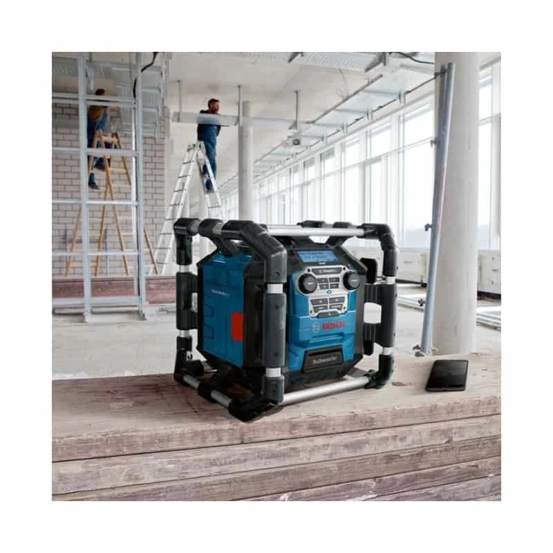 Cette radio est spécialement conçue pour écouter des stations radio numériques et pour diffuser de la musique à partir de smartphones. Elle est compatible avec toutes les batteries 18 V de Bosch Professional.