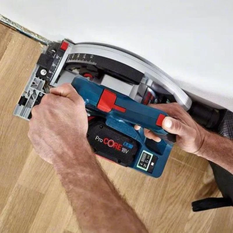 Le mariage entre la batterie ProCORE 18V et le moteur sans charbons BITURBO confère à la scie plongeante sans-fil Bosch Pro GKT 18V-52 GC la puissance d’une scie plongeante filaire de 1620 W.