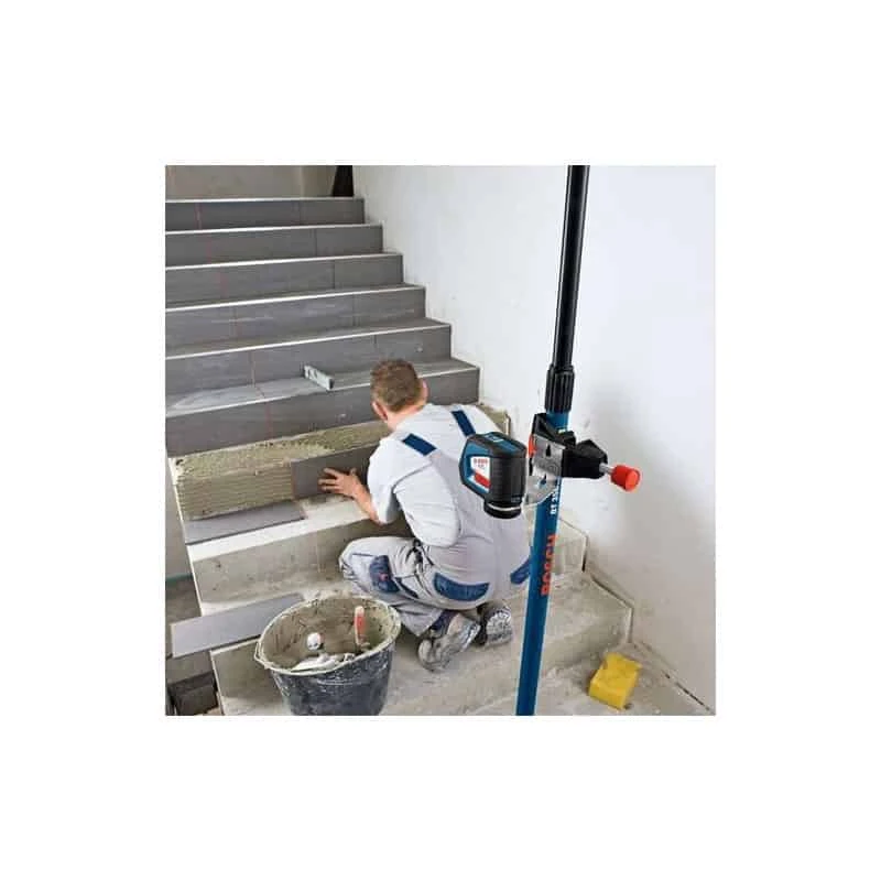 Comptatible laser GPL5C, GPL5, GPL3, GLL2-50, GLL2-80P et GLL3-80P. Hauteur de la tige réglable de : 1,40 m à 3,50 m En 3 parties : le support du laser se fixant sur toute la hauteur de la tige Extrémités avec revêtement antidérapant pour un maintien sûr Utilisable en combinaison avec le support universel BM 1 pour télémètres et lasers lignes, pour plus de précision Poids maximum supporté par la pince : 2 kg Livrée avec équerre métallique à tige filetée 1/4″
