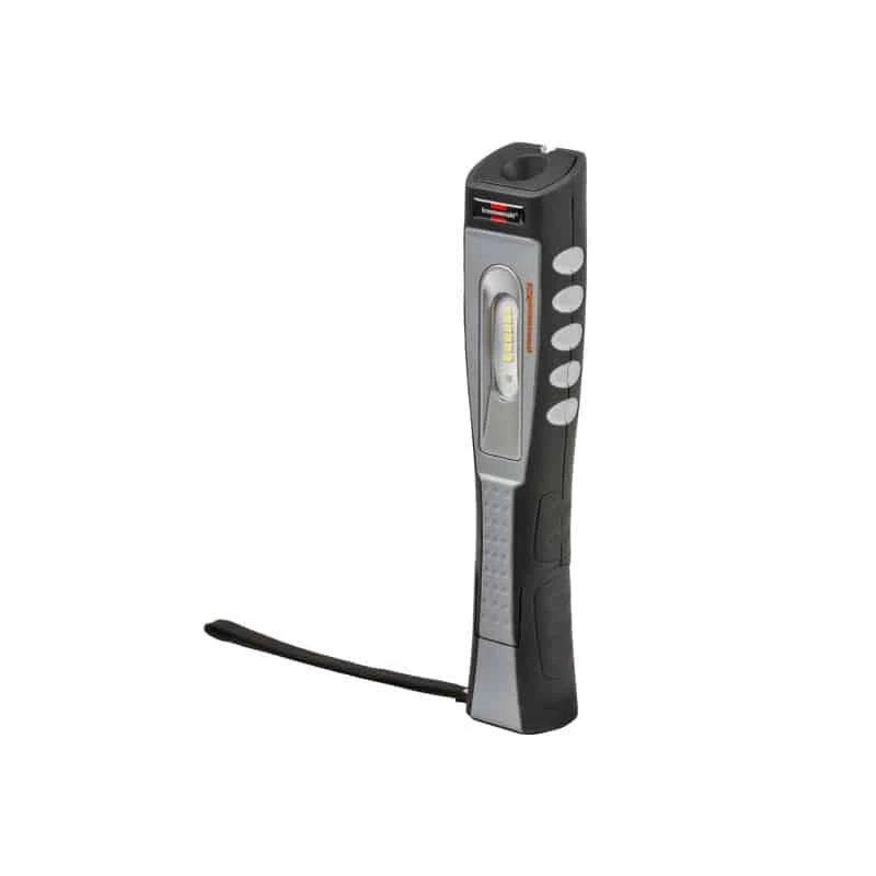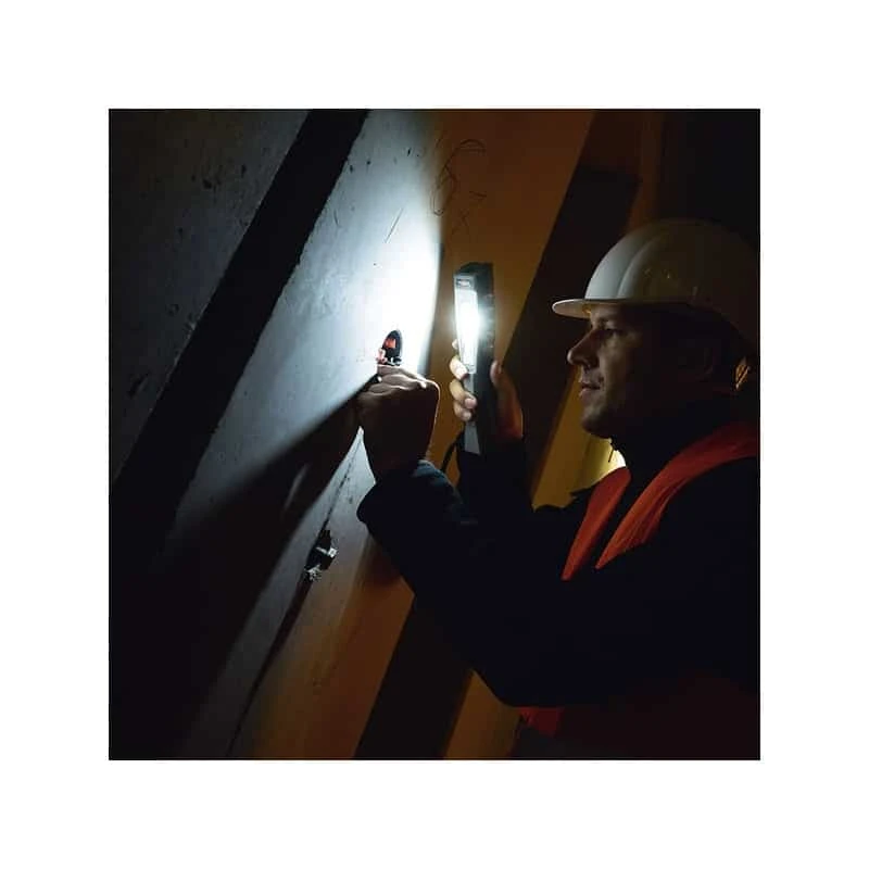 Lampe étanche à la poussière et protégée contre les projections d’eau (IP 65). Le socle de maintien orientable est équipé d’un aimant puissant afin que la lampe puisse être réglée dans la bonne position d’éclairage. un crochet pivotant à 360° et 2 aimants supplémentaires permettent de fixer la lampe sur des surfaces planes.