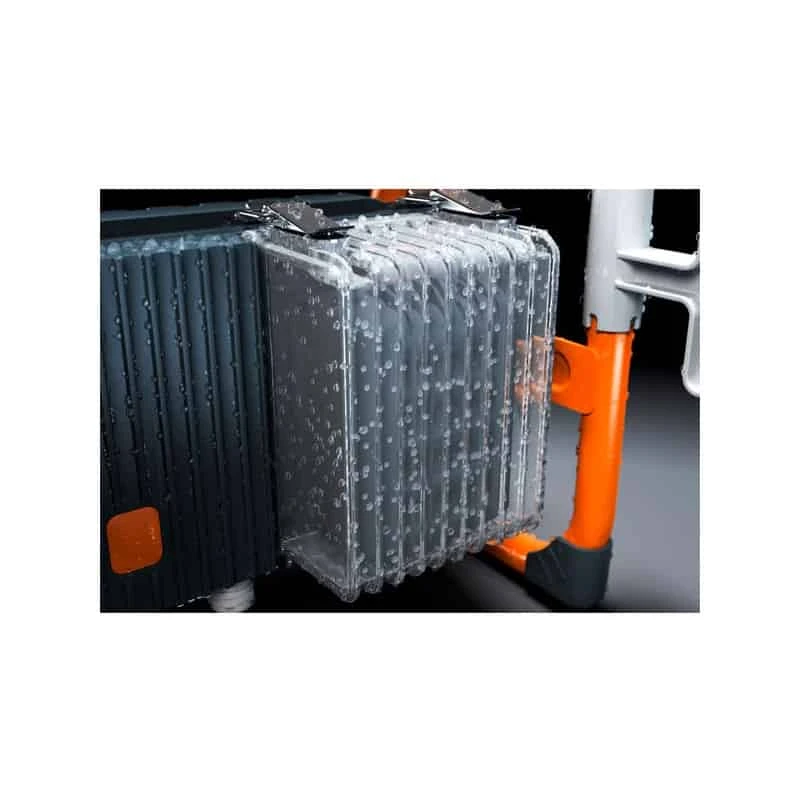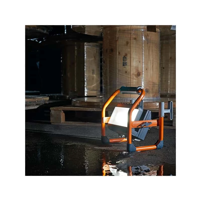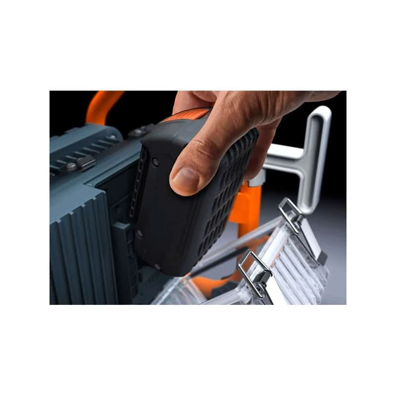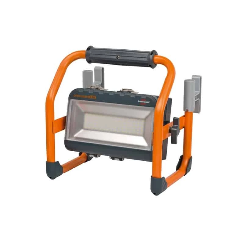 Projecteur LED de Brennenstuhl : sa technologie permet d’utiliser le projecteur avec une batterie Li-ion. Brennenstuhl a intégré un système de batteries Bosch : toutes les batteries bosch pro de 18V Li-ion sont compatibles avec le projecteur. Le capot de batterie fermé protège la batterie contre les projections d’eau et de poussières. L’autonomie anoncée sur batterie de 5Ah est de 2.5 heures pour une utilisation à 100% et de 5 heures pour une utilisation à 50%, grâce a son réglages sur 2 modes d’éclairage. Sa puissance de 40 Watts offre une luminosité de 3200 lumen pour un bon éclairage sur tous vos chantiers.