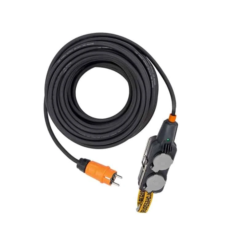 Le câble de la rallonge est composé de caoutchouc pour l’isolation et de néoprène pour la gaine extérieure, avec une section de câble de 2.5 mm².