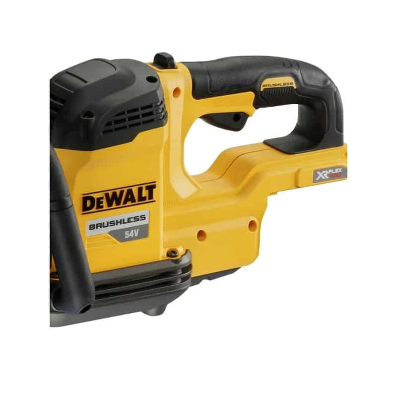 La Dewalt DCS397N à une forme ergonomique et une poignée en caoutchouc pour une meilleure tenue et moins de fatigue, un blocage de sécurité de l’interrupteur est présent afin d’éviter un démarrage accidentel.