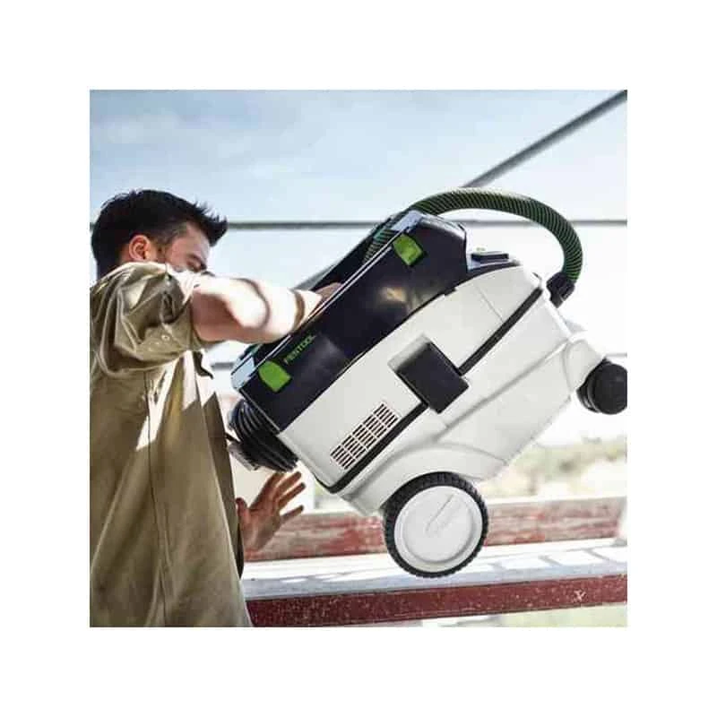 L’aspirateur mobile Festool CTL 26 E AC Cleantec convient à l’aspiration de poussières jusqu’à 1 mg/m³ selon la catégorie de poussières L. Il est également adapté à l’aspiration d’eau.