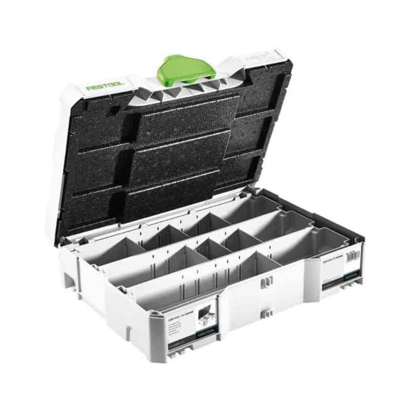 Ce systainer vide SYS 1 T-LOC, contient 3 casiers avec compartiments flexibles pour le remplissage personnalisé avec des DOMINO ou d’autres accessoires ou outils.