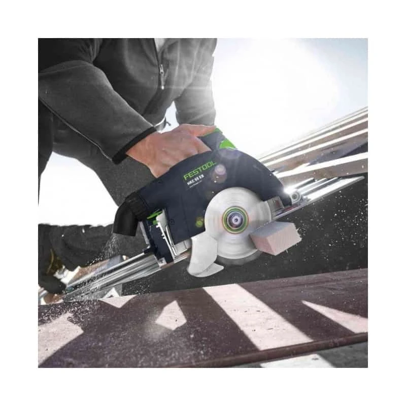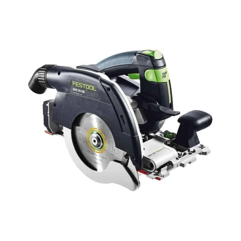 Capable de couper jusqu’à 55 mm de profondeur, la scie ciruclaire sans fil Festool HKC 55 EB permet de réaliser des coupes nettes et précises grâce au dispositif de réglage de la profondeur de coupe avec fonction plongeante, la commande à distance du capot basculant, au couteau diviseur et au réglage angulaire de 0 à 50°.