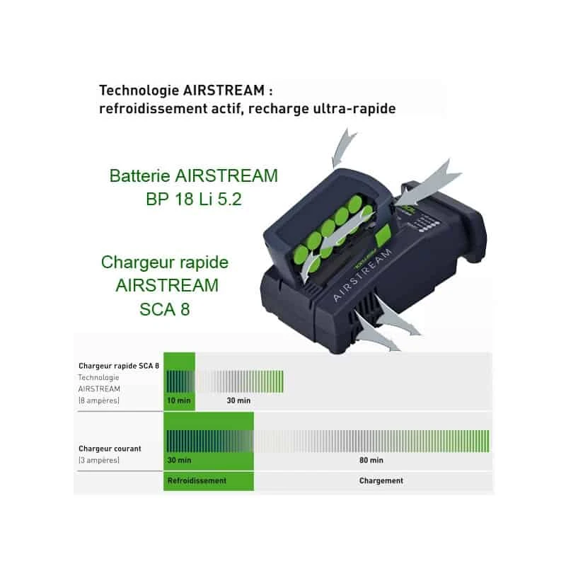 Aussi puissante qu’un outil filaire, la scie sauteuse sans fil Festool PSBC420 séduit par sa force d’entraînement puissante garantissant une coupe précise, rapide et nette.