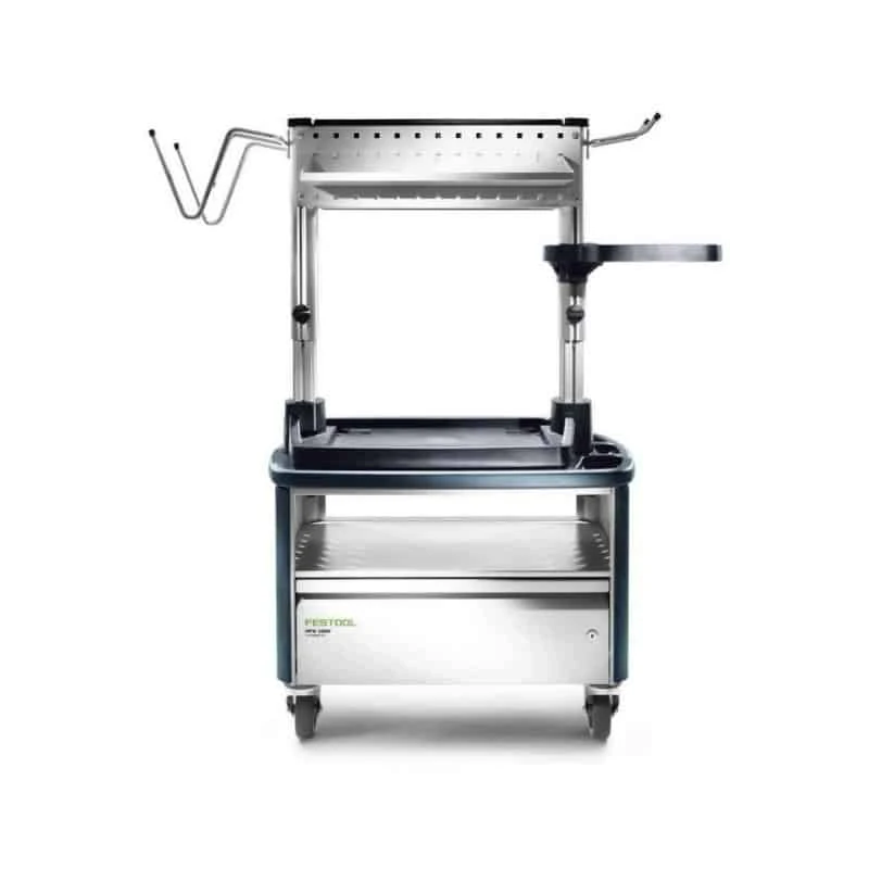 Très robuste, la servante d’atelier Festool UCR 1000 répond aux exigences qu’impose l’atelier. Les machines, accessoires et outils de travail sont accessibles rapidement grâce aux crochets et aux rangements.