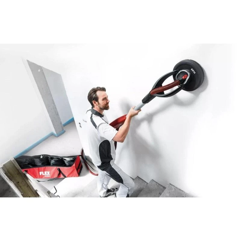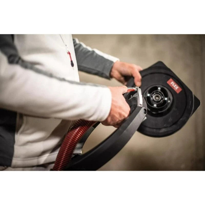 L’arbre d’entraînement flexible permet un entraînement de force fiable et apporte une flexibilité élevée. Pour un travail sans poussière, la giraffe possède une aspiration efficace entre la couronne et le plateau de ponçage. De plus, vous avez la possibilité de raccorder les aspirateurs de sécurité FLEX avec le système de clipsage FLEX sur le tube de guidage. Le guidage de la giraffe est facile, car la machine est naturellement équilibrée.