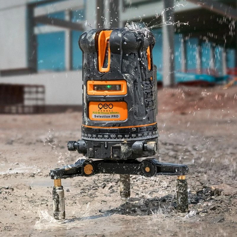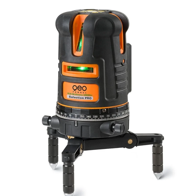 Le laser FLG 66-Xtreme Green + SP de GEO Fennel offre une visibilitĂ© des lignes sans cellule allant jusqu’Ă 30 mĂštres. Il s’utilise sur batterie mais aussi sur piles. Profitez de 4 lignes verticales Ă 90° les unes des autres, d’une ligne horizontale d’un angle de 130° ainsi qu’un point d’aplomb.