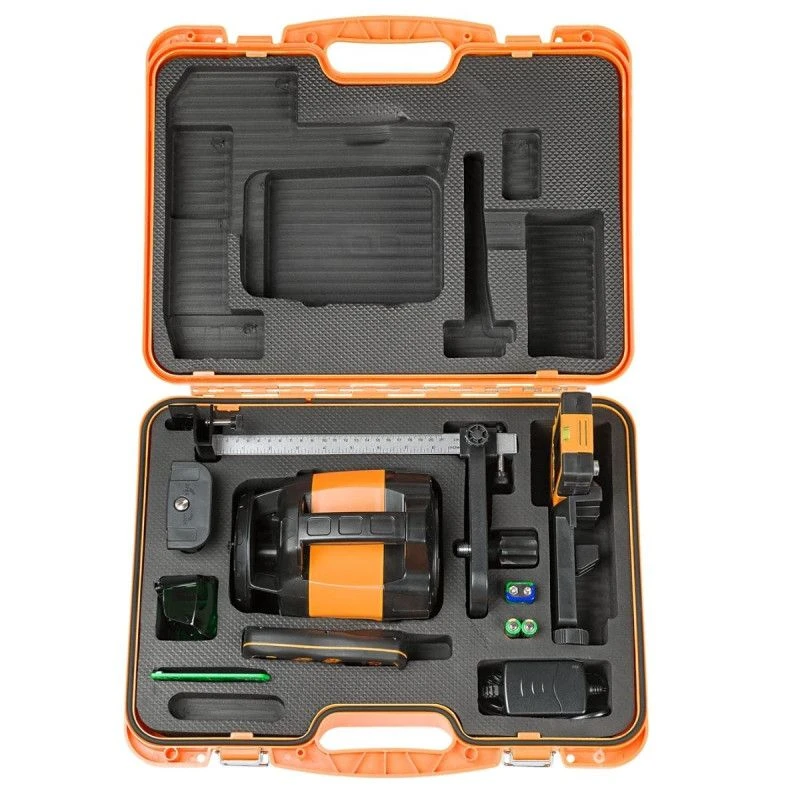 Ergonomique, le laser s’utiliser de façon conviviale : les fonctions principales sont sur le laser et les fonctions additionnelles comme le scan et la fonction TILT sont sur la télécommande. Pratique, grâce à la cellule FR 45 vous bénéficiez d’une portée de 1000 mètres de diamètres. De plus, le laser possède un mode scan et points, le point d‘équerrage permanent est à 90° et, si votre laser n’est plus à niveau, il s’arrête automatique afin de ne pas fausser vos repères.