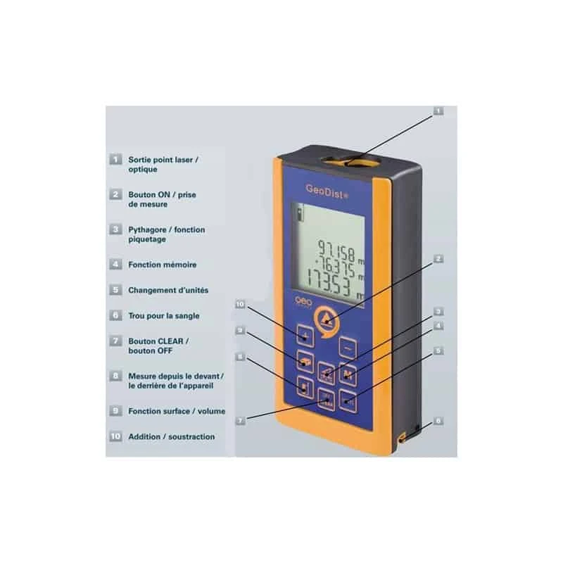 Fonction devis pour chiffrer rapidement et précisement surface de plancher, longueur de plinthe. Fonction peintre pour chiffrer rapidement les sufaces de murs. Le nouveau télémètre professionnel pour mesurer avec exactitude les longueurs, surfaces, volumes et beaucoup d autres applications. Mesure permanente – Additionne et soustrait – Surface et volume. Fonctions: peinture, triangulation, Pythagore, piquetage. Remplace: LeicaX310