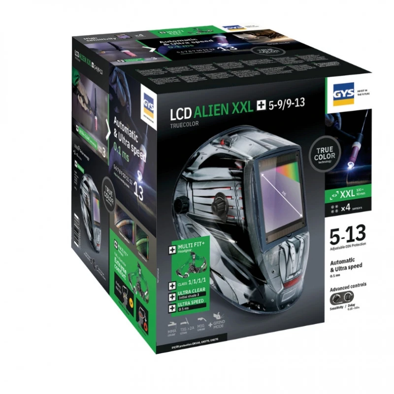 Le masque de soudure Alien True de GYS est un équipement qui reste indispensable pour la sécurité des soudeurs. Le masque est équipé d’une cagoule optoélectronique qui permet de protéger les yeux et le visage de l’utilisateur contre les UV, infrarouges et diverses projections.