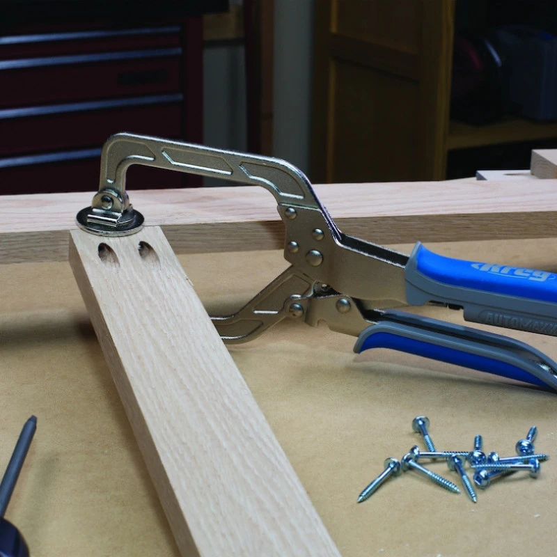 La pince pour les projets bois de Kreg est un outil parfait pour la menuiserie. En effet, la pince permet de serrer les matériaux jusqu’à 76 mm d’épaisseur de façon homogène pour ne pas abîmer les surfaces. La technologie Automaxx® permet à la pince de s’adapter aux matériaux avec une simple pression sur les poignées.