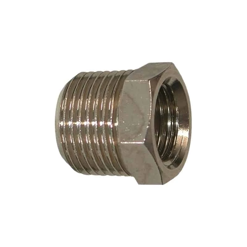 Raccord de jonction mâle/Femelle en laiton nickelé Lacmé 358 600 – Filetage et taraudage coniques : 3/8” Mâle – 1/4” Femelle – Hexagone 17 mm