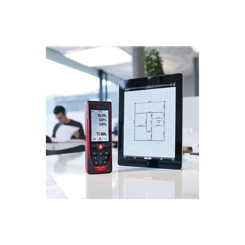 Pour un tracé rapide sur le chantier : Bluetooth® Smart et l’application gratuite « Leica DISTO™ sketch »: La dernière application « Leica DISTO™ sketch » est l’interface idéale entre le Leica DISTO™ D810 touch et un smartphone ou une tablette. Créez facilement des esquisses à l’échelle, notez les dimensions des objets sur une photo et vérifiez les dessins dans l’application. Il est possible d’intégrer des esquisses détaillées dans une vue en plan existante. Toutes les mesures et toutes les informations sont rassemblées dans un document qui peut être envoyé directement au bureau.