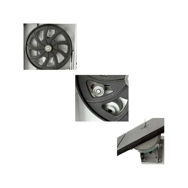 2 Volants en fonte d’acier parfaitement usinés et équilibrés, revêtus d’une bande de caoutchouc
