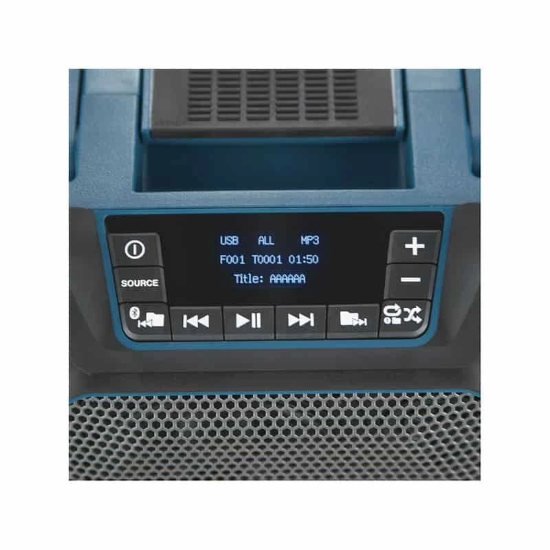 Diffusez vos musiques préférées sur vos chantiers grâce à l’enceinte bluetooth DMR 202 de Makita ! Sa conception robuste lui permettra de résister à d’éventels chocs. De plus, elle bénéficie d’une protection IP 64. Elle est donc protégée contre les poussières ainsi que des projections d’eau de toutes directions.