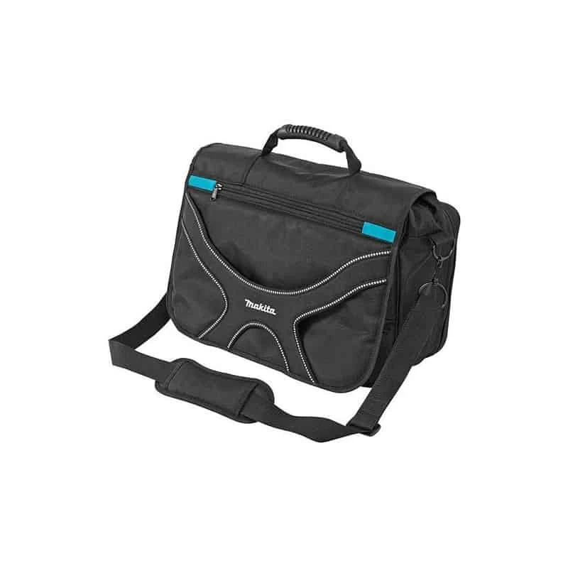 Hyper pratique et sophistiquĂ©e cette sacoche pour ordinateur portable noire et bleue avec surpiqures, elle possĂšde de nombreuses poches de rangement fermĂ©es avec Zipp et en plus des espaces range outils trĂšs utiles. Sa poignĂ©e renforcĂ©e vous permettra de la porter Ă la main et une bandouliĂšre amovible pour le port sur l’Ă©paule.