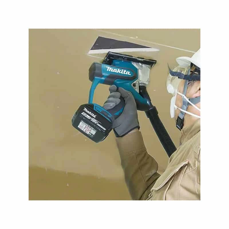 Cette scie à plaque de plâtre avec une prise en main parfaitement étudiée pour le travail en hauteur.