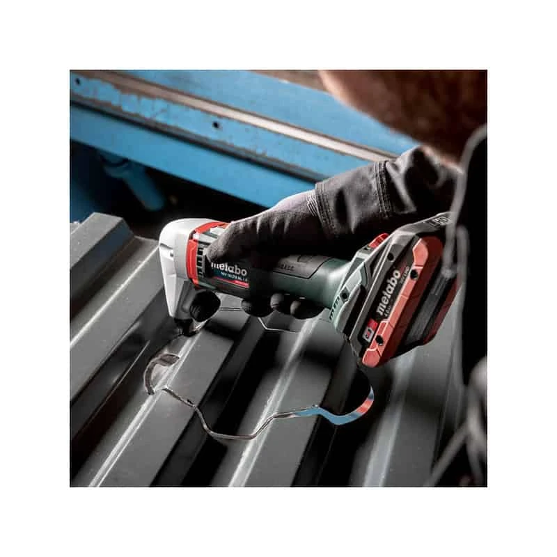 Maniable et puissance, la grignoteuse sans fil Metabo NIV 18 LTX BL 1.6 permet de couper facilement les tôles plates et formées.