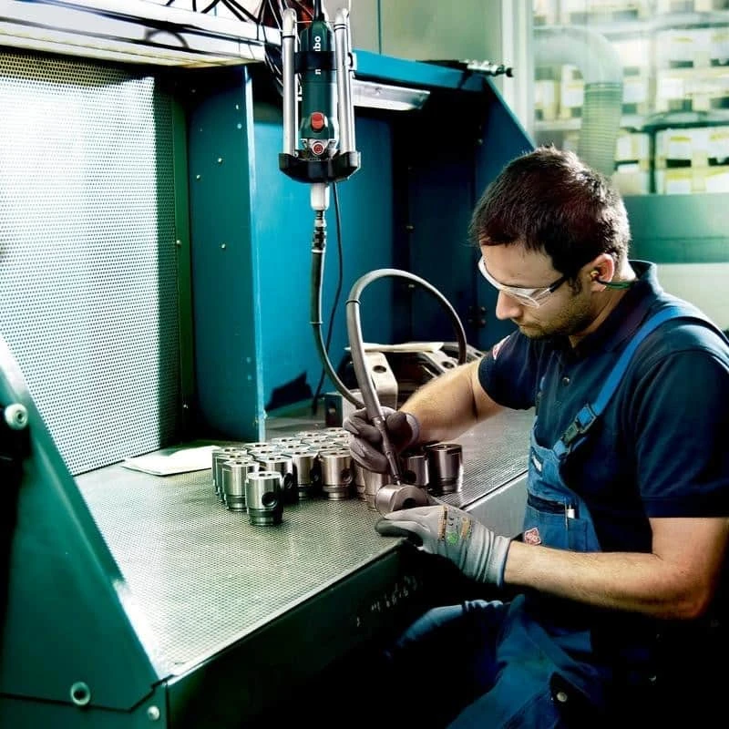 Grâce au système électronique Vario-Constamatic, la vitesse s’adapte aux matériaux travaillés et reste quasi constante en charge. De plus, le blocage de la broche permet de la changer facilement et rapidement. Pour une utilisation stationnaire et un centrage parfait, le collier de serrage est précis ainsi que sa pince de serrage.