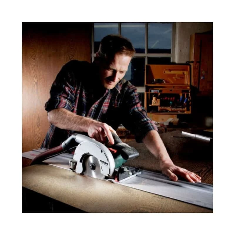 La scie circulaire portative et plongeante Metabo KSE 55 VARIO PLUS permet de réaliser des coupes près du mur. Grâce au carter de scie et à la semelle en fonte de magnésium moulée sous pression, la machine est particulièrement légère.