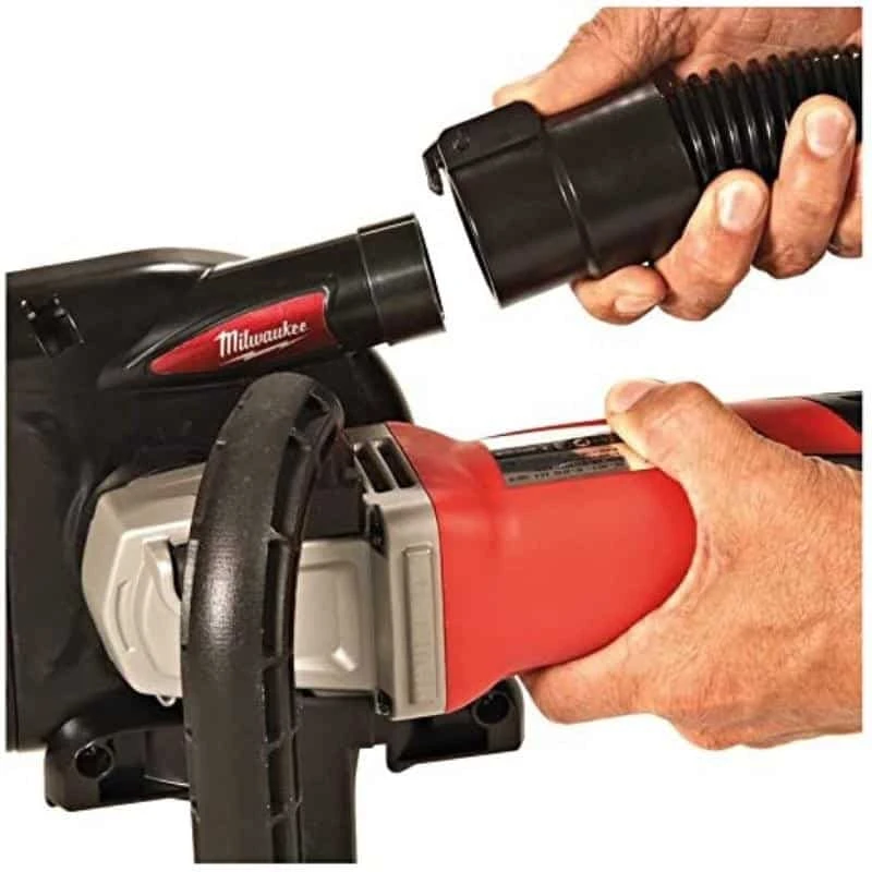 La meuleuse se raccorde directement sur les aspirateurs Milwaukee® ou tuyaux de ⌀32 mm et il est très facile de la monter et ou de la démonter sans outil.