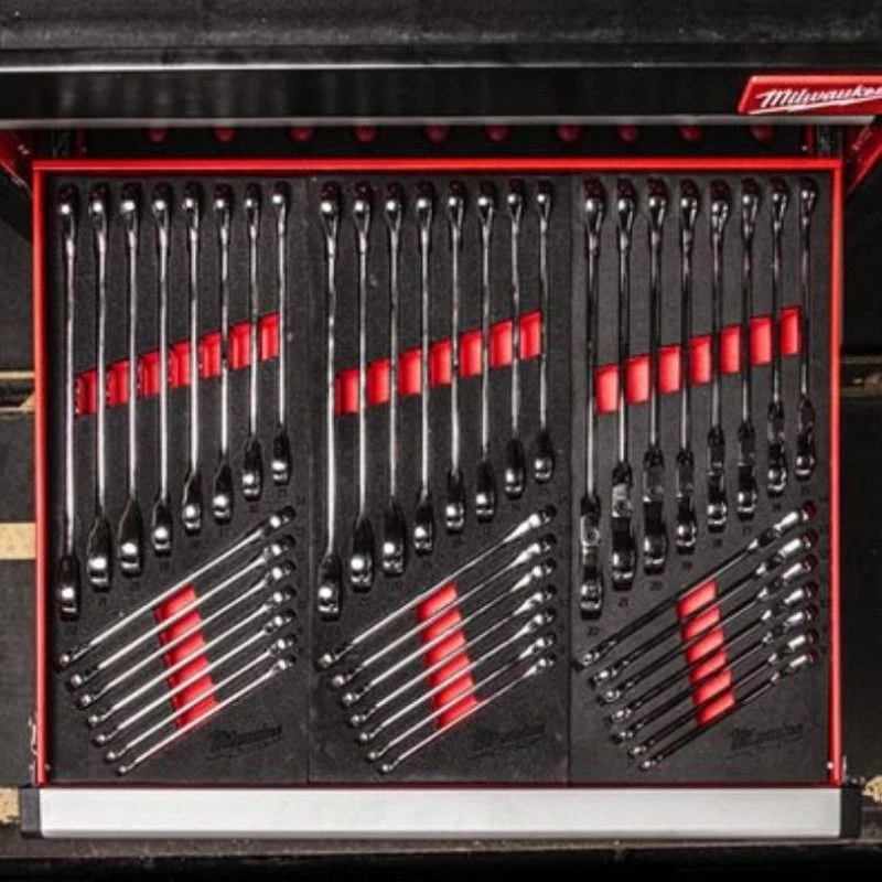 Le module mousse clés à tête flexible de 15 pièces est doté d’une nouvelle technologie MAX BITE qui permet de réduire les arrondis et les mauvaises adhérences. Il est aussi composé de cliquets durables à double empilement pour une plus grande conservation.