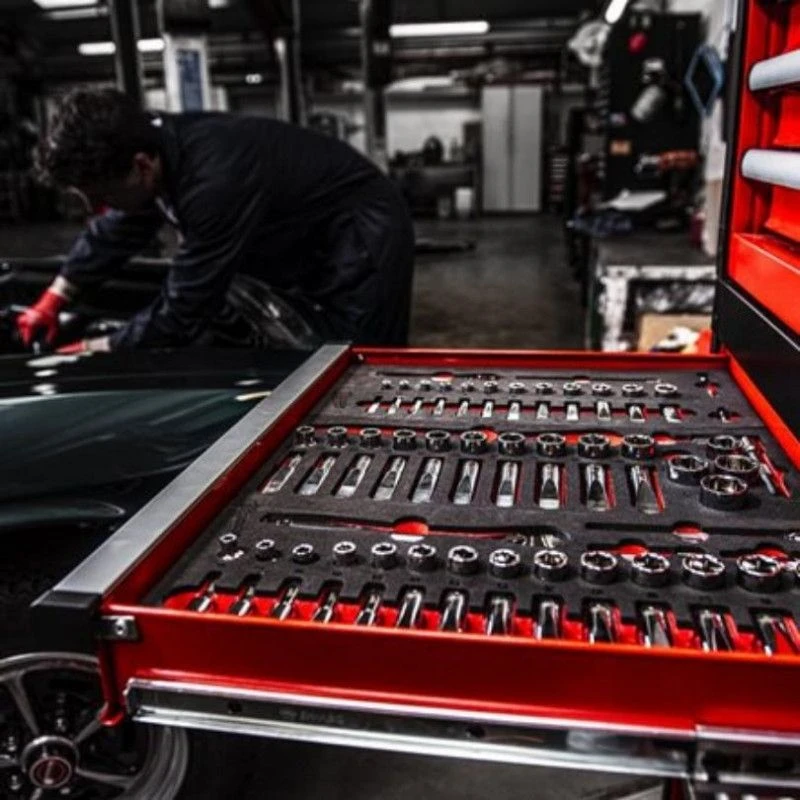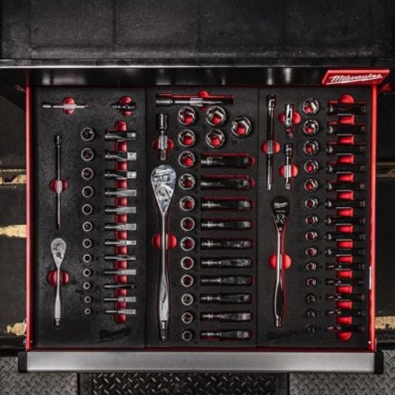 Ce jeu de clés et de douilles 1/2 » 28 pcs est composé d’une clé cliquet avec pour technologie FOUR FLAT™ évitant donc le roulement des douilles. De plus une conception d’une clé de 90 dents pour les espaces de travail étroits.