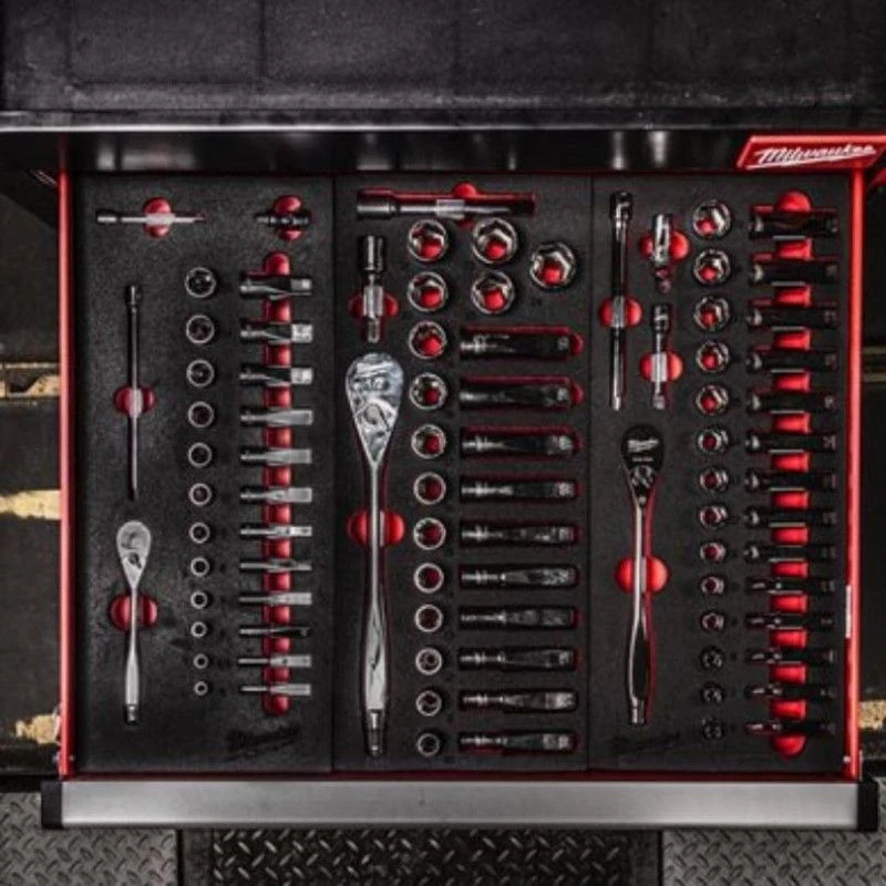 Ce module mousse douille et cliquet 1/4″ de 28 pièces de chez Melwaukee à une conception de 90 dents. Sa technologie FOUR FLAT appliquée sur les côtés de la douille empêche le roulement et assure donc une bonne prise en main.