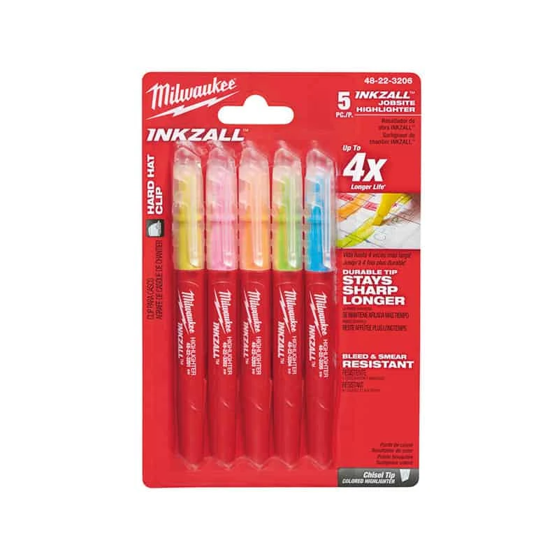 Le surligneur Inkzall™ Milwaukee peut rester ouvert 12 h sans sécher. Idéal pour les dessins d’architecte ou sur papier classique.