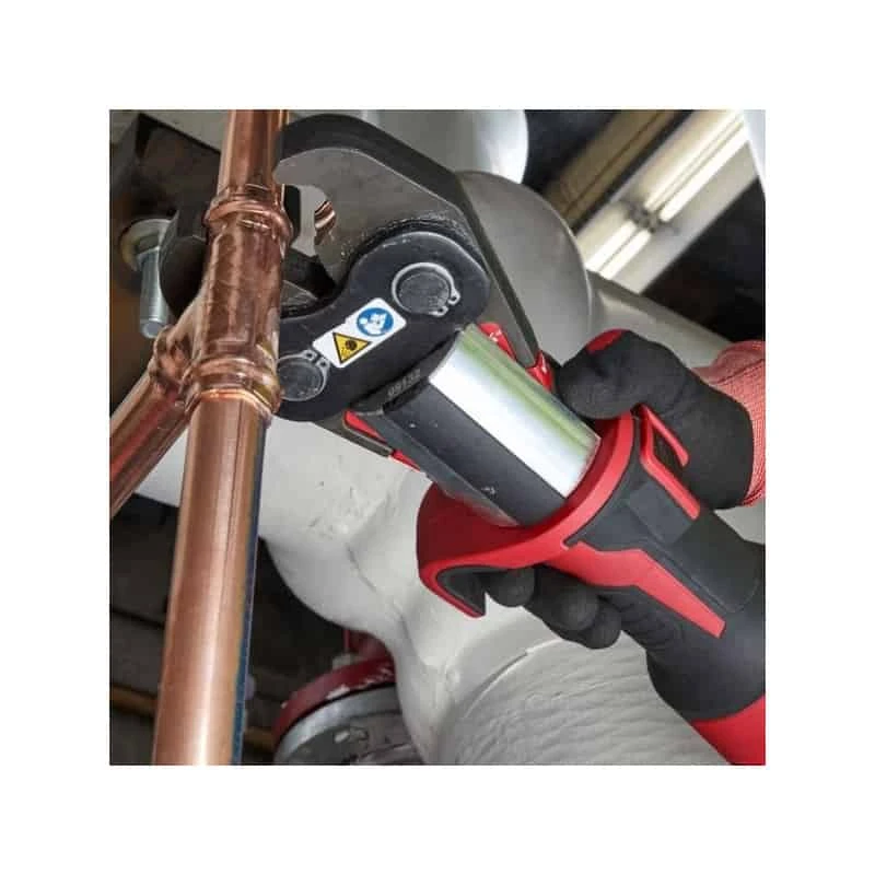 La sertisseuse sur batterie Milwaukee M18 ONEBLHPT est équipée d’un système hydraulique offrant une puissance de serrage de 32 kN. Il permet de sertir des tubes métalliques jusqu’à 108 mm et des tubes composites jusqu’à 110 mm.