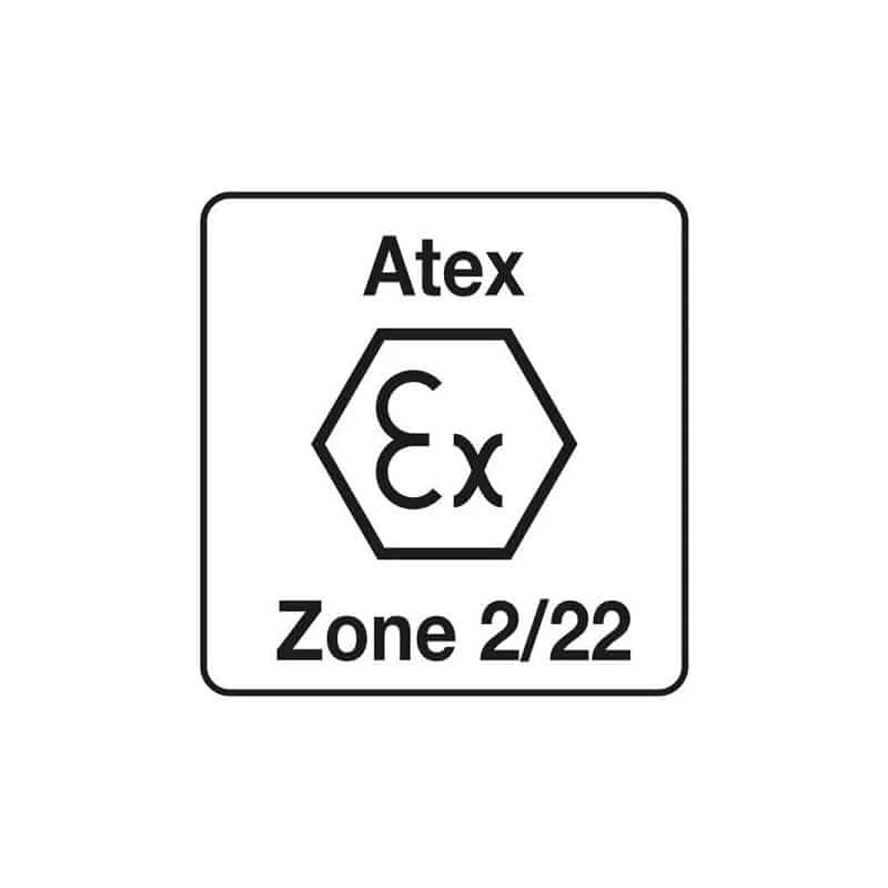 – Lampe certifiée ATEX zone 2/22 (II 3 GD Ex nA ic IIB T4 Gc tc IIIC T135°C Dc).