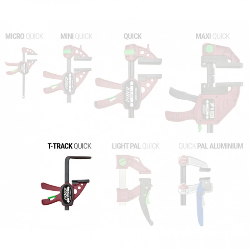 Le Mini Quick T-Track de Piher est un serre-joint avec une puissance de serrage de 60 kg. L’outil est disponible en deux longueurs. La différence avec les autres produits de la gamme Quick, c’est qu’il est à la fois rapide et léger avec la possibilité de l’utiliser à une seule main.