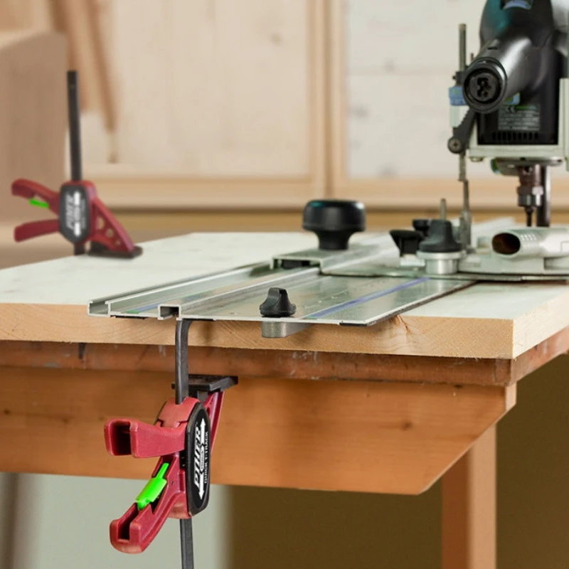 La tête en nylon et fibre de verre est plate pour une insertion dans des rainures de 12 x 8 mm. La tige du serre-joint est en acier trempé pour une plus grande résistance. Enfin, la partie mobile est équipée d’un protecteur en plastique neutre pour ne pas laisser des tâches.