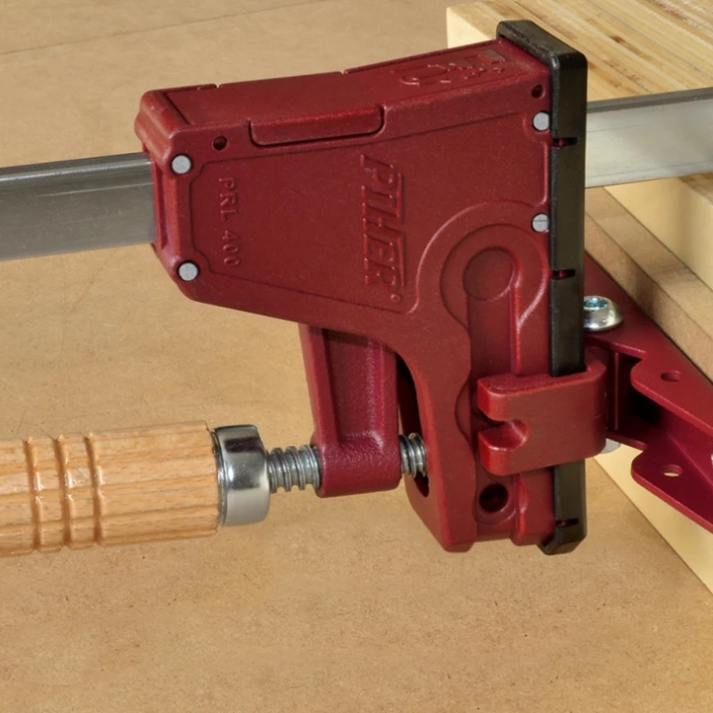 Le set de 2 patins pivotant s’adapte sur le serre joint parallèle PRL 400. La surface des patins est en bois DM pour ne pas abîmer les pièces. Le patin a une adhérence en polyamide PA et un support en acier pour visser des patins personnalisés.