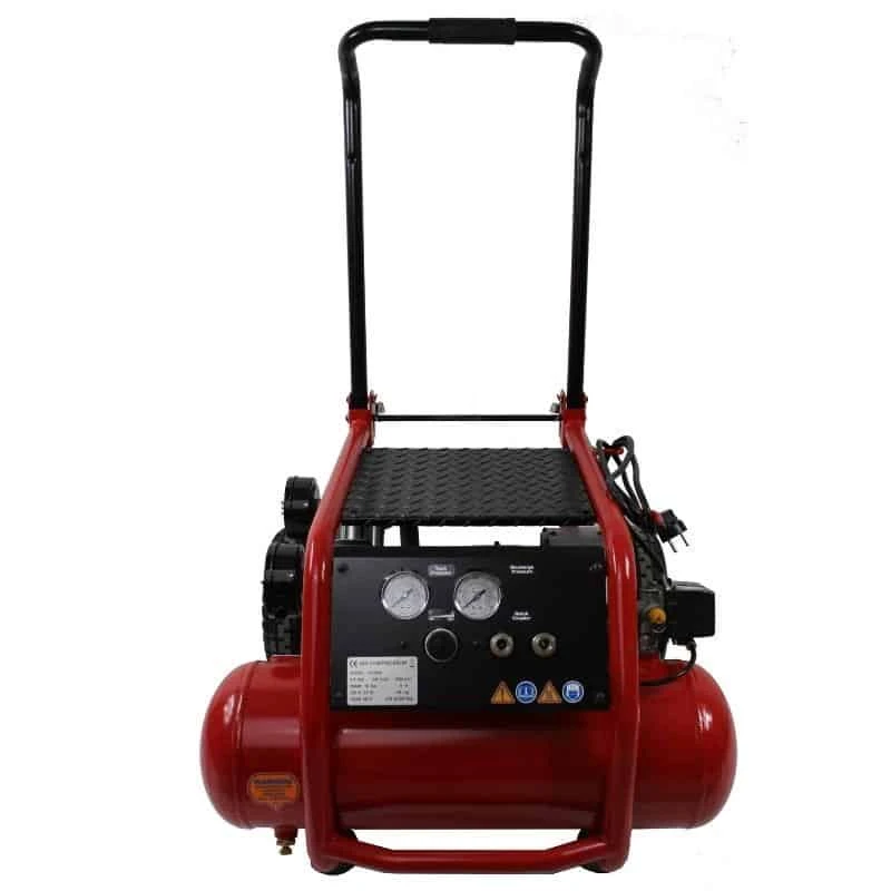 Ce compresseur bicylindre de SCAB est sans huile ce qui est un avantage car cela ne demande pas d’entretien et facilite le transport.