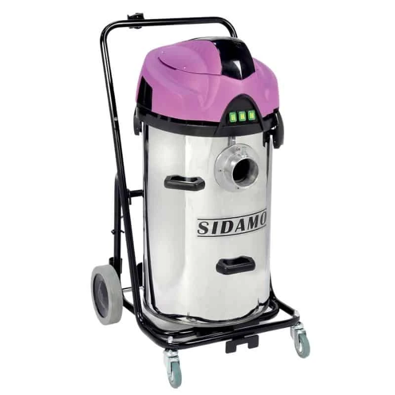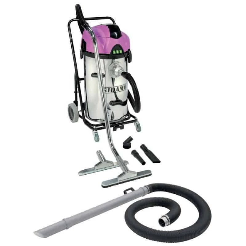 Conçus pour des utilisations intensives continues, l’aspirateur industriel Jet 100 i90 de Sidamo est doté d’un moteur à refroidissement de type by-pass et d’une aspiration biturbine. Pouvant aspirer la poussière, mais aussi l’eau grâce à son filtre résistant à l’eau et au suceur liquide fourni, la cuve est conçue pour se basculer afin de facilité la vidange des liquides.