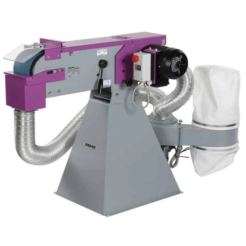 Dotée d’un moteur à haut rendement classe IE2, la ponceuse à bande SIDAMO possède un disjoncteur thermique pour assurer la protection de la machine et également d’un arrêt coup de poing à accrochage. De plus, la ponceuse bénéficie d’un interrupteur à bobine à manque de tension.