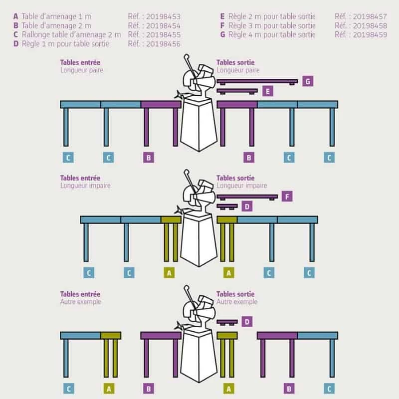 Pratique, profitez d’une grande modularité en ajoutant sans limite des tables. Robustes, les axes des rouleaux sont équipés de roulements à billes de grande qualité. De plus, la construction a été faite par châssis tubulaire et par découpes au laser.