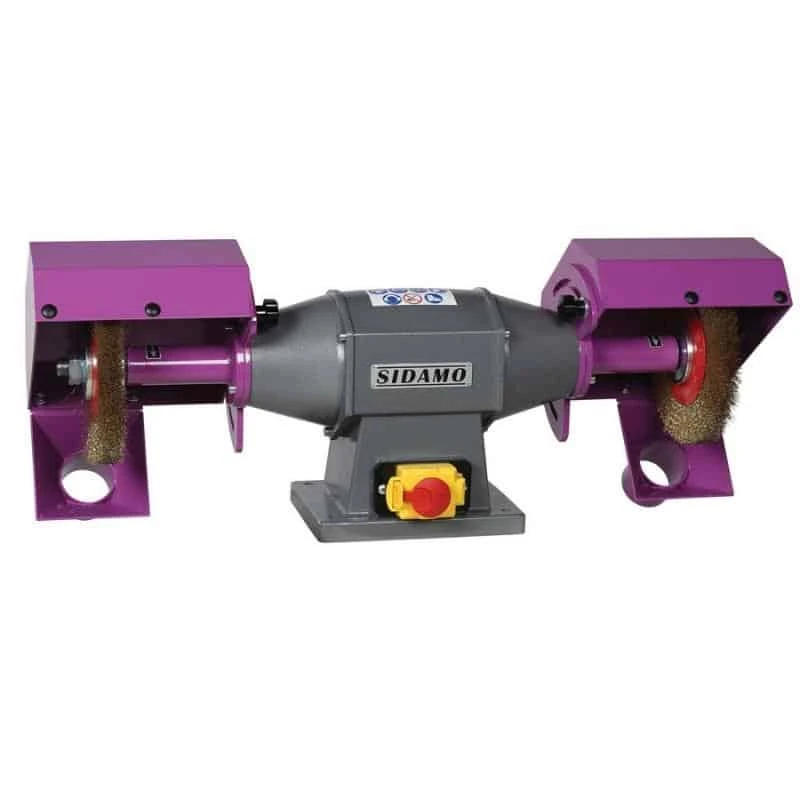 Le montage du touret est sur roulements à billes étanche auto-lubrifiés. Au niveau des carters, le touret possède des carters en acier embouti équipés d’une buse de captage de poussières et des carters de brosse orientable.