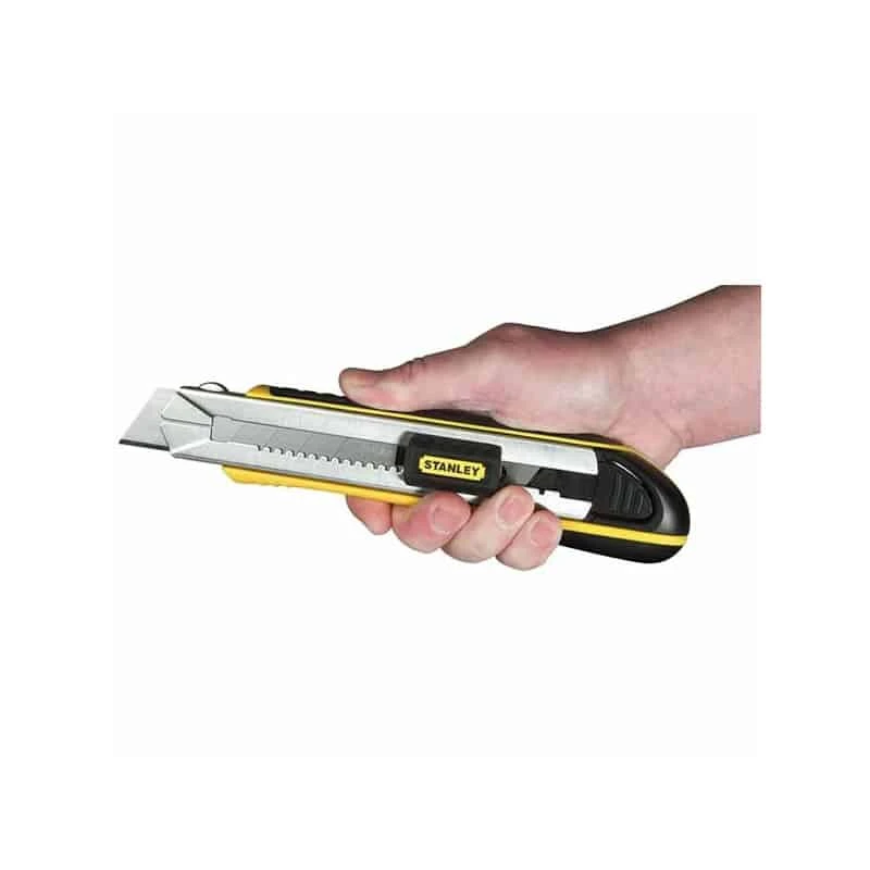 Fourni avec 4 lames FatMax, le cutter à cartouche 0-10-486 de STANLEY a été fabriqué avec un corps ABS bimatière offrant ainsi une bonne préhension de l’outil.