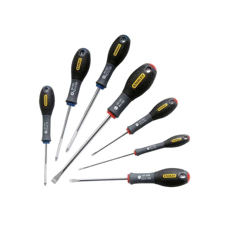 Parfaitement appropriés pour une utilisation professionnelle intensive, les tournevis FatMax de STANLEY sont dotés d’une lame en acier au chrome vanadium ; grande résistance et réduction des risques de casse de la pointe et de la lame.